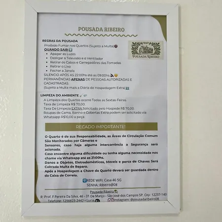 Pousada Ribeiro hotel guests should check out at 12:00. - ❓
